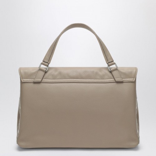 Medium hand bag by Zanellato in hammered leather in clay colour, characterized by a flap with double turn-lock closure, top handle, adjustable and removable shoulder strap, internal flat pocket, internal zip pocket, and silver-coloured metal hardware.