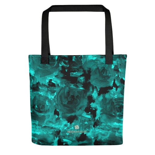 Ocean Blue Rose Tote Bag, Flower Floral Print Designer 15″ x 15″ Market Tote Bag – Made in USA/EU