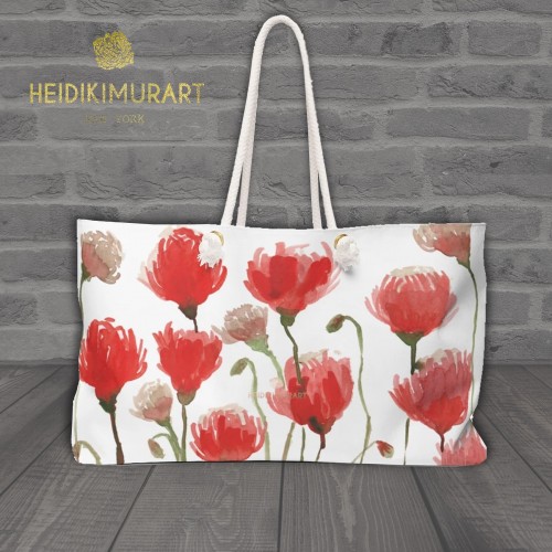White Red Poppy Backpack, Best Flower Floral Print Unisex Large Classic Designer Backpack One Size