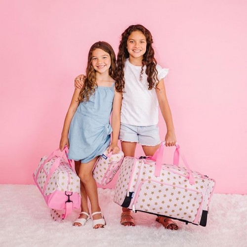 Wildkin Kids Overnighter Duffel Bag – Carry-On Size, Ideal for School & Sleepovers – Pink Glitter
